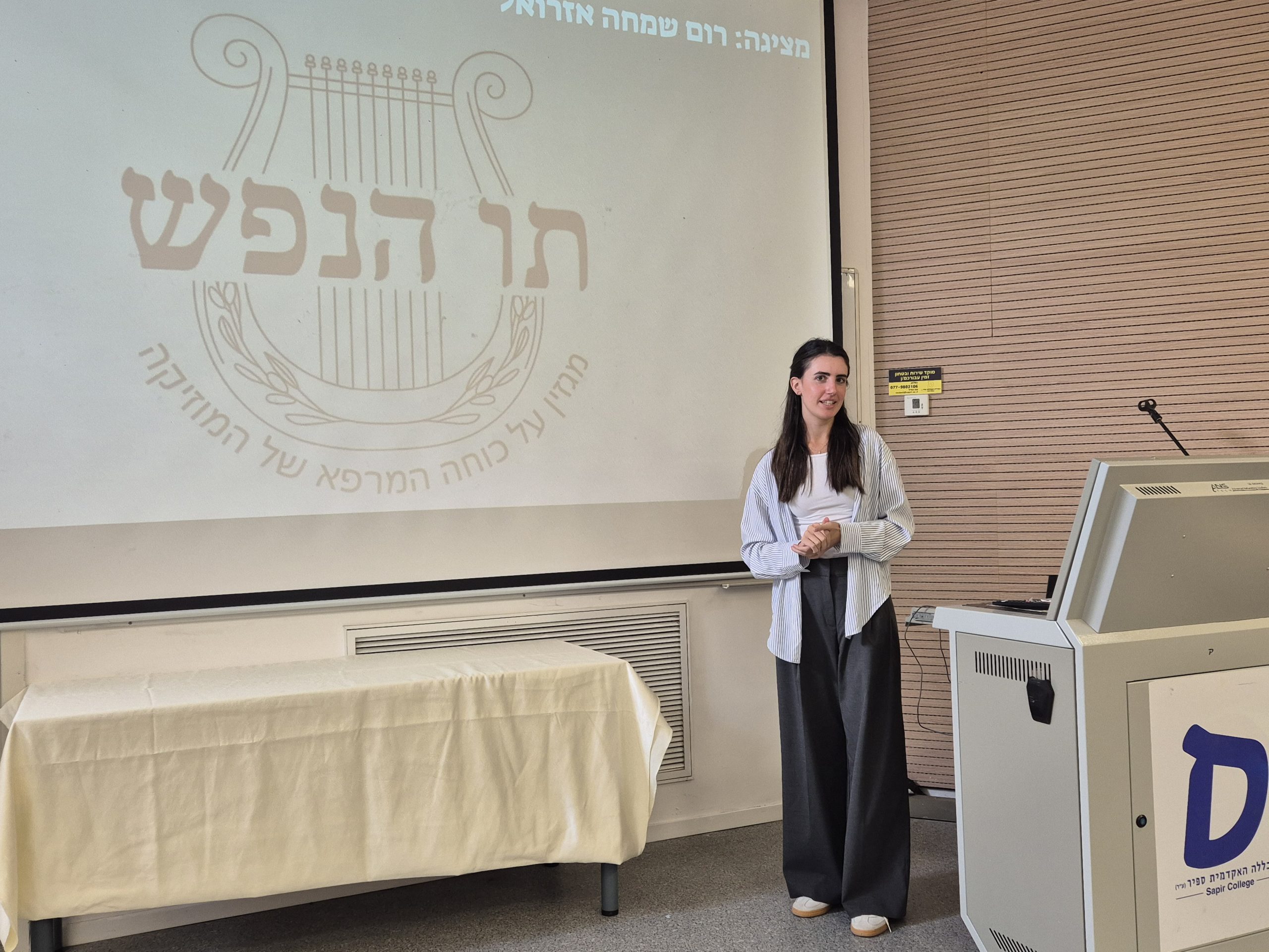 תו הנפש – הסטודנטית רום אזרואל הקדישה את פרויקט הגמר שלה לצלילים, מכל סוג, שיש להם השפעה מרפאה ומבריאה. היא שמעה ממוזיקאים על המצבים שבהם הרגישו שהצלילים שלהם משפיעים על הקהל, ראיינה יוצרי כלים ובדקה כיצד צלילים משמשים לטיפולים בטראומות, בחיילים ובנפגעי המלחמה.
