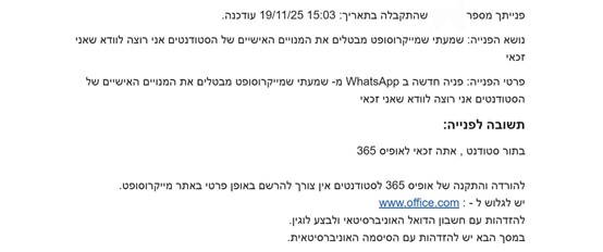 “אנחנו עומדים כאן לרשות הסטודנטים/ות, ונשמח לסייע ככל שניתן בהכוונה ובהדרכה. רווחת הסטודנטים/ות נמצאת תמיד לנגד עינינו, ובשנת תשפ״ז נבחן מחדש את ההסכם עם מיקרוסופט כדי לוודא שהוא משרת בצורה מיטבית את צורכי הסטודנטים והסגל”.
