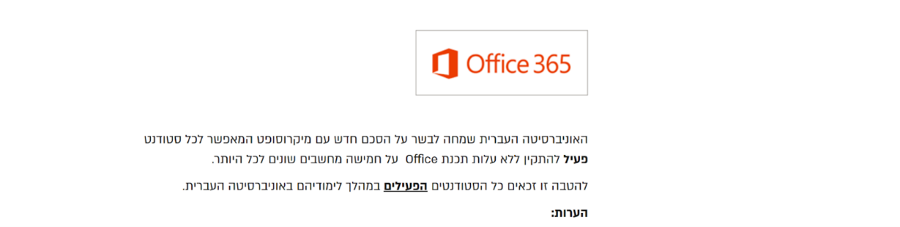 - כל סטודנט רשאי להתחבר באמצעות חשבון המכללה ליישומי Office בגרסת Web, כולל שמירה ושיתוף בענן.